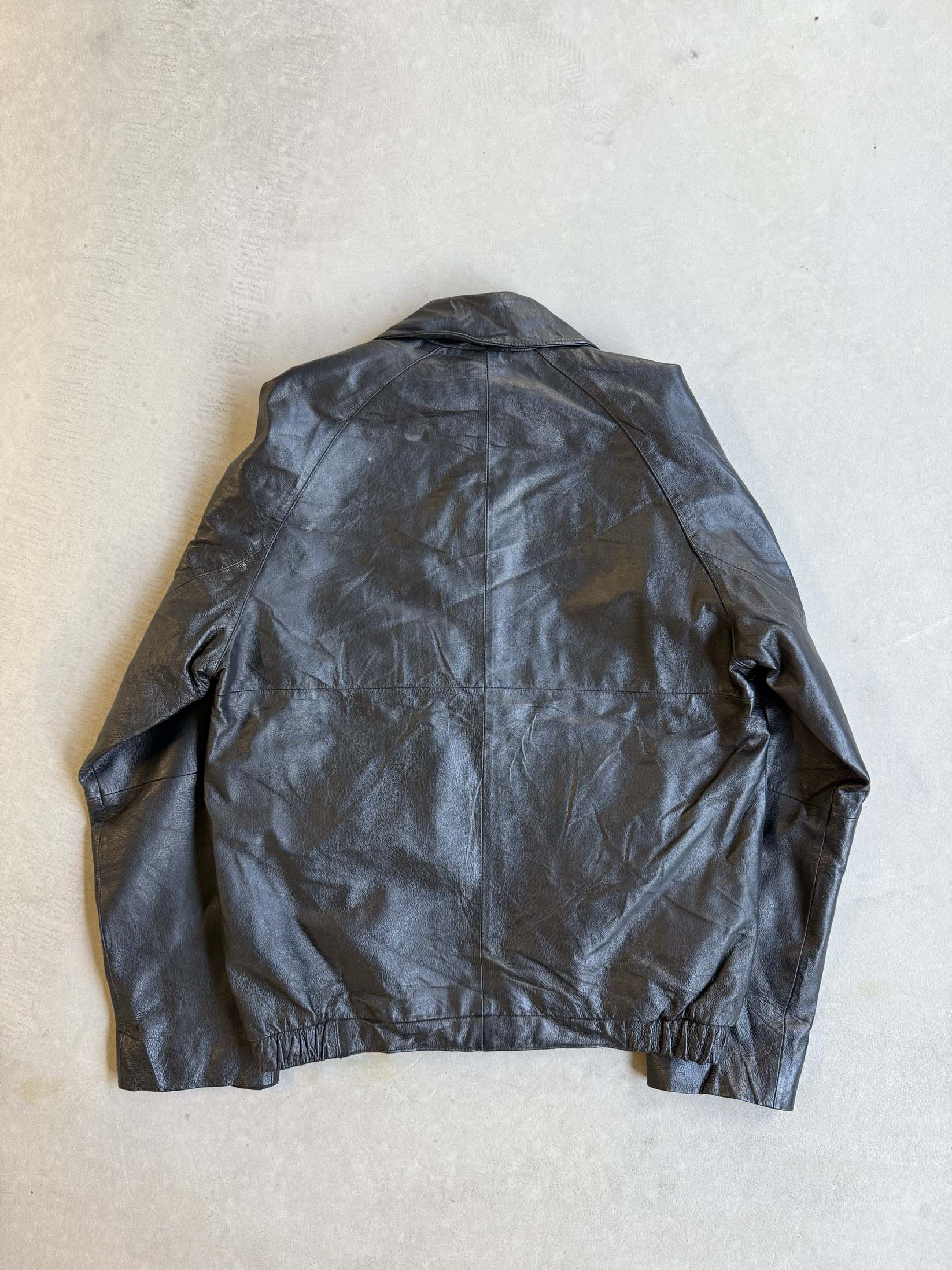 This vintage Covington leather jacket is made of 100% Genuine leather. It features pocket details and scrunch details on the hem to create a minimalistic boxy fit.