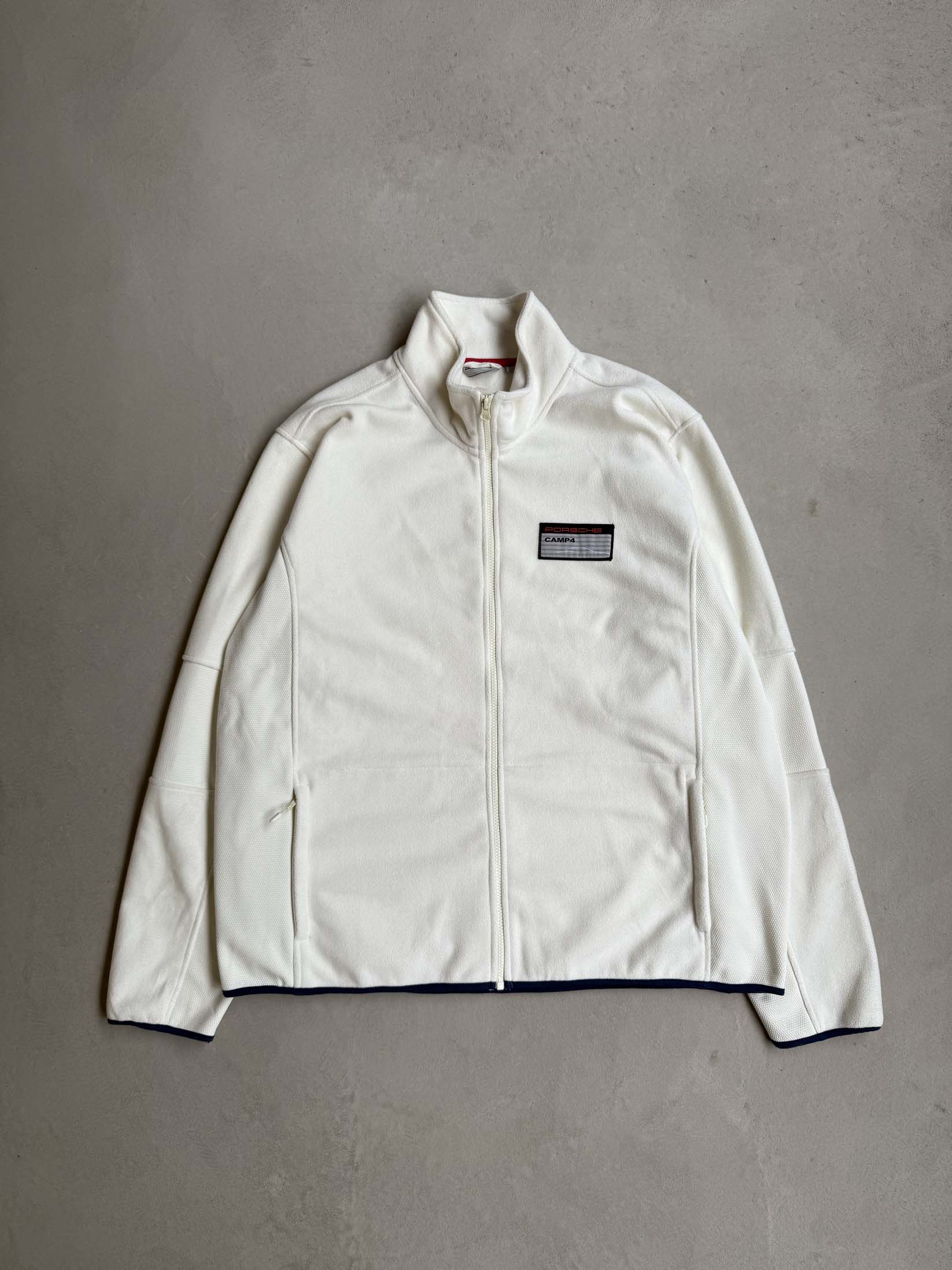 Vintage Porsche fleece jacket with Porsche-logos on the front and back.